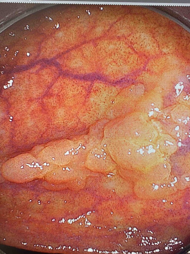 以下の画像は実際に便潜血陰性でしたが便通異常で大腸内視鏡を施行した患者で見つかった病変です。