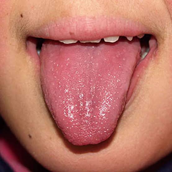 舌が赤くブツブツとしたイチゴのような状態になります。