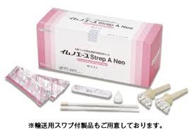 当院では、喉の粘膜を綿棒でこすって調べる「迅速検査キット」を使用します。